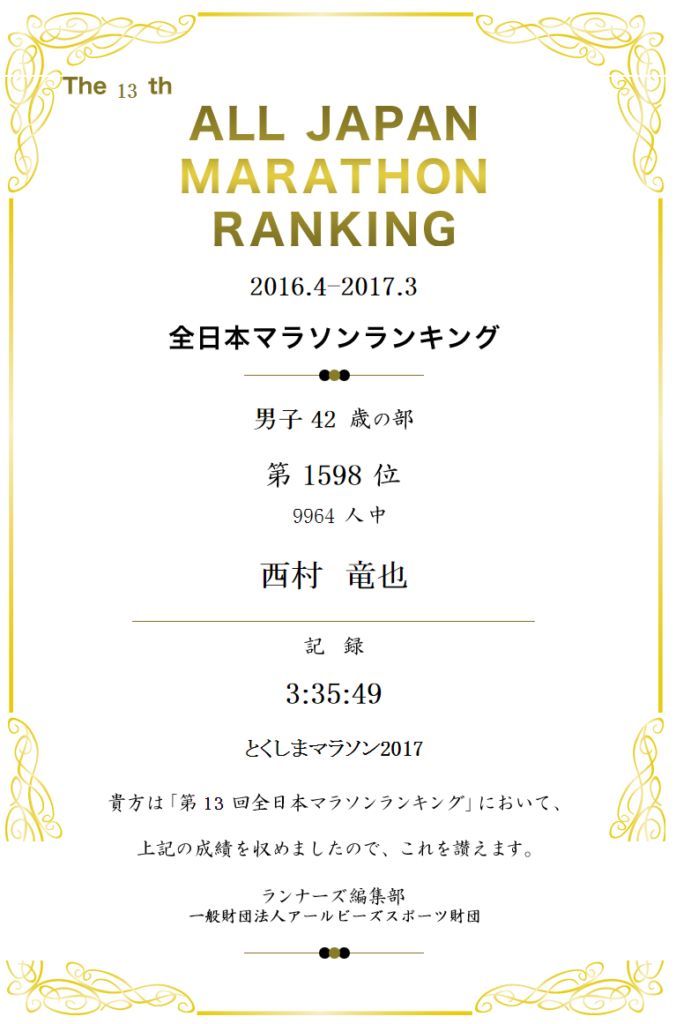 さあ、みなさん、全日本マラソンランキングを励みに、また一年走りましょう!
