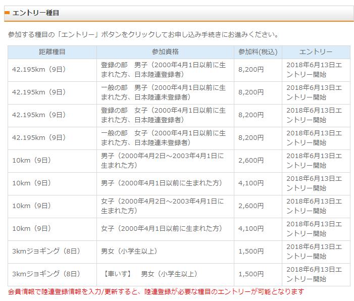 RUNNETにログインして開始時間を待つのは【エントリー種目】のページ