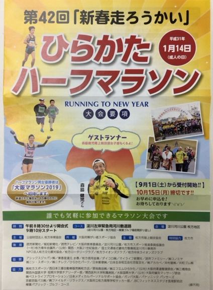 「ひらかたハーフマラソン(2019年1月14日開催)」のエントリーが2018年9月1日から始まりました。