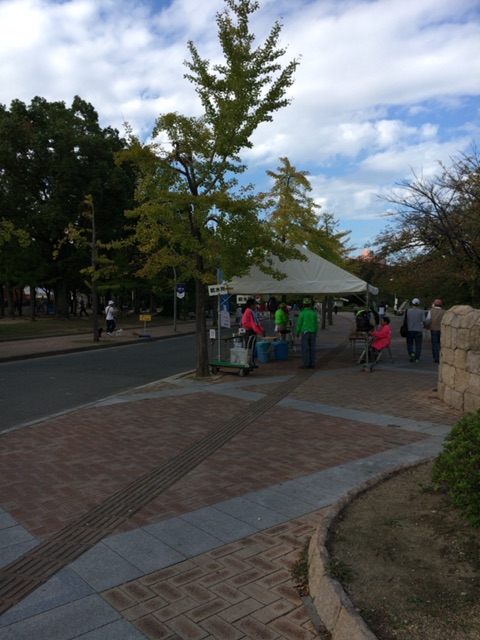 ハーフマラソンは周回コースを7周するのですが、ペースが保てなくなり、黄色シャツのランナーさんから遅れだした5周目前後の給水所での出来事です。