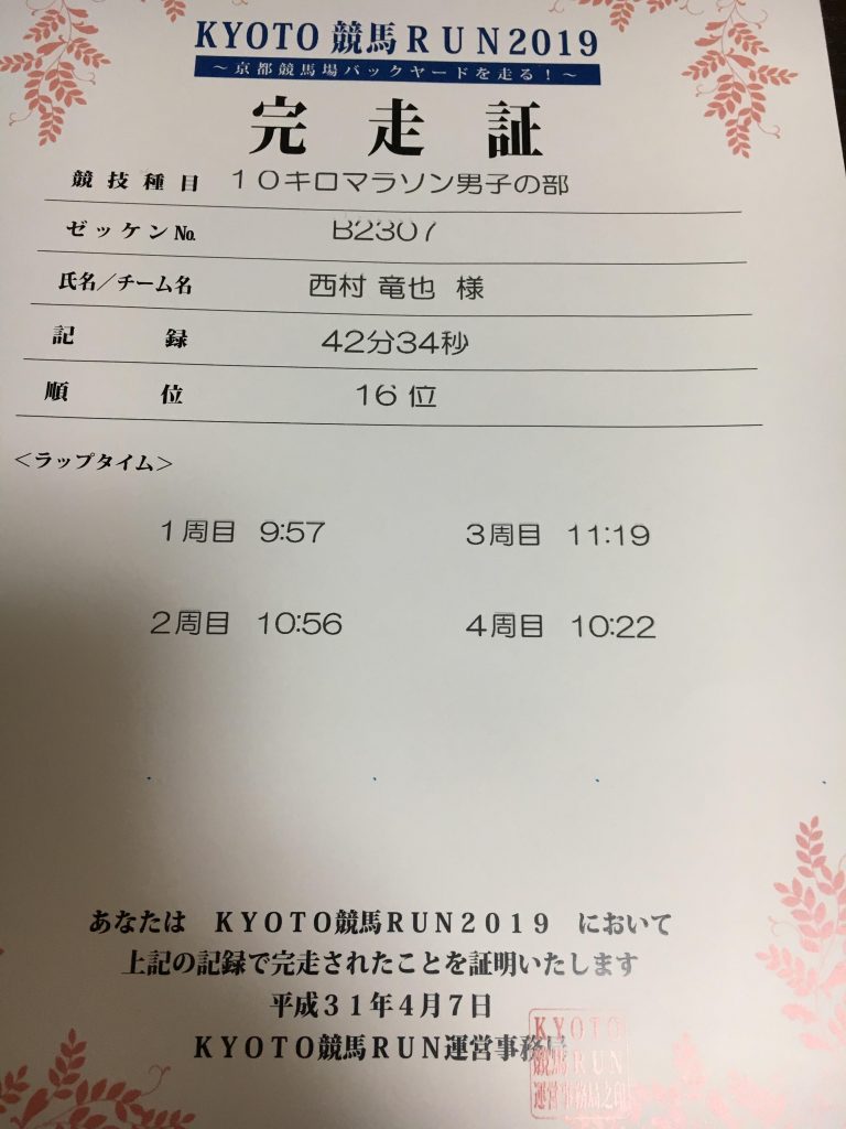2019年4月7日に開催された「KYOTO競馬RUN2019」の10キロの部に出場しました。