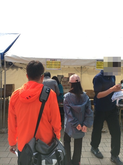 受付テントでハガキを見せ、ナンバーカード、参加賞を受け取ります。