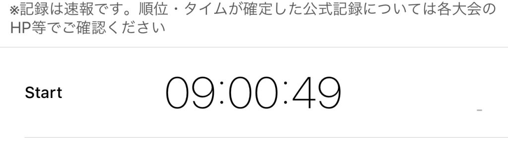 応援ナビの通過時刻は9:00:49、号砲が9:00だったので、スタート地点を通過するまで49秒かかっています。